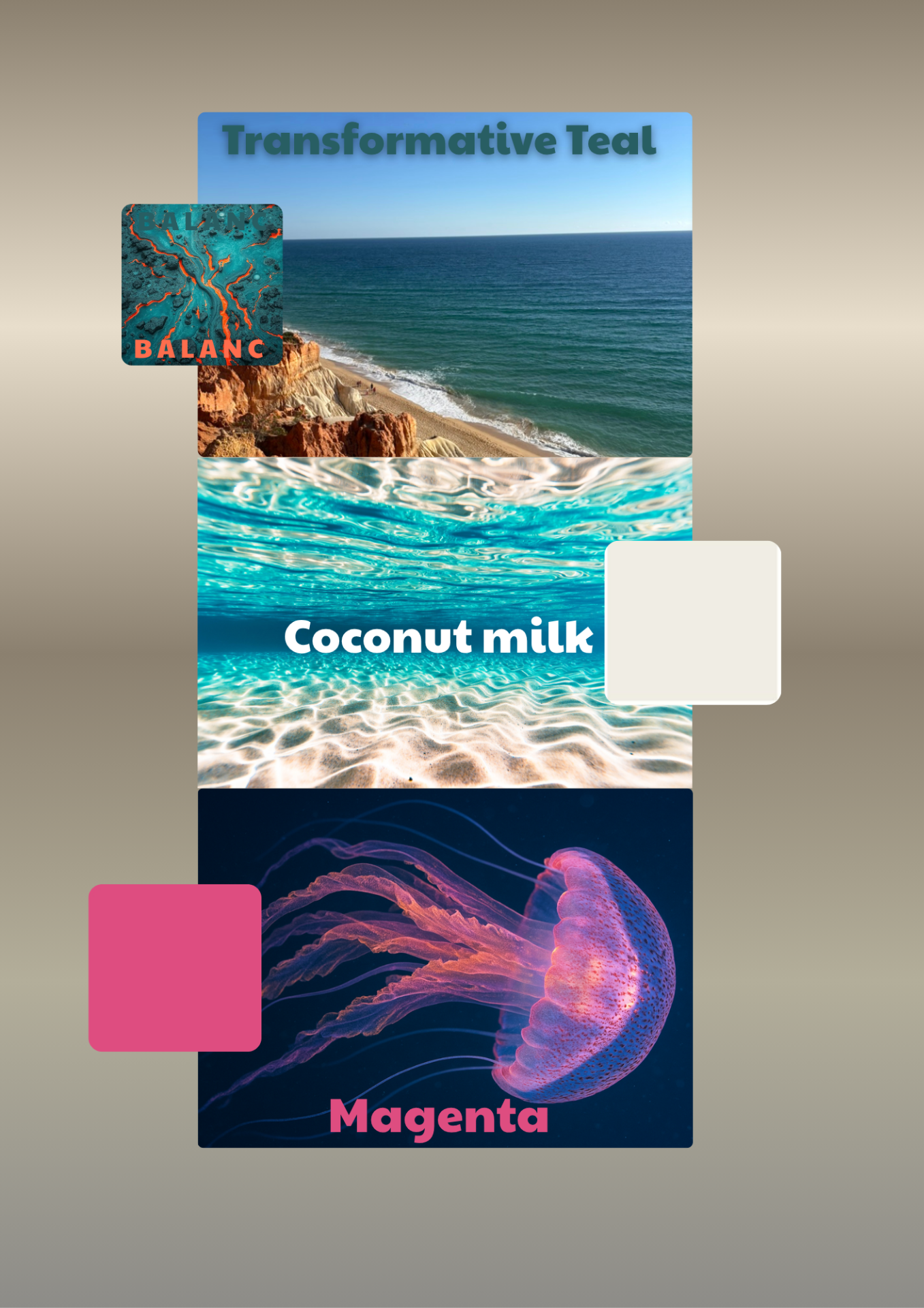 Naše barvy vycházejí z rovnováhy mezi klidem, energií a přirozeností. Každý odstín má svůj vlastní význam – společně tvoří harmonii, která odráží filozofii značky.
